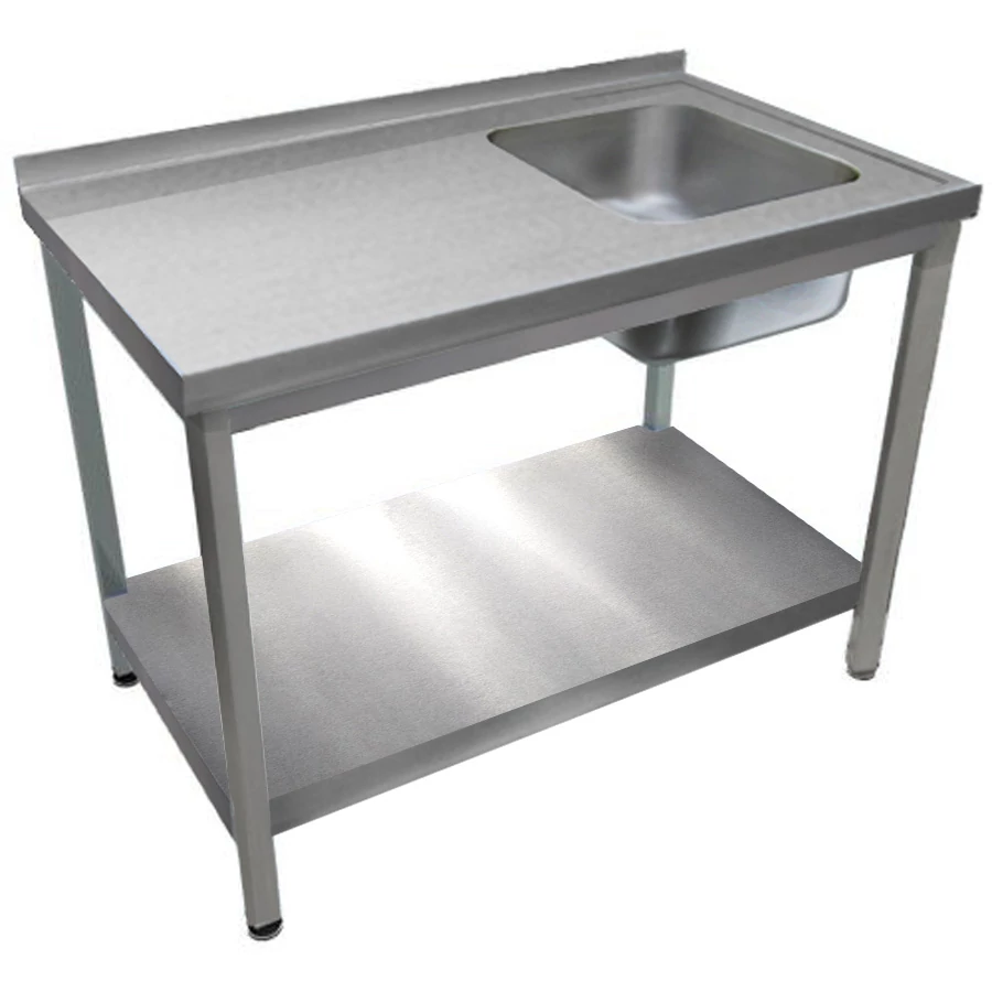 1000mm 1 medencés nagykonyhai mosogató jobb oldali csepegtetővel, 500x500x300mm medencével, lábra állítva, polccal, r.m. acél