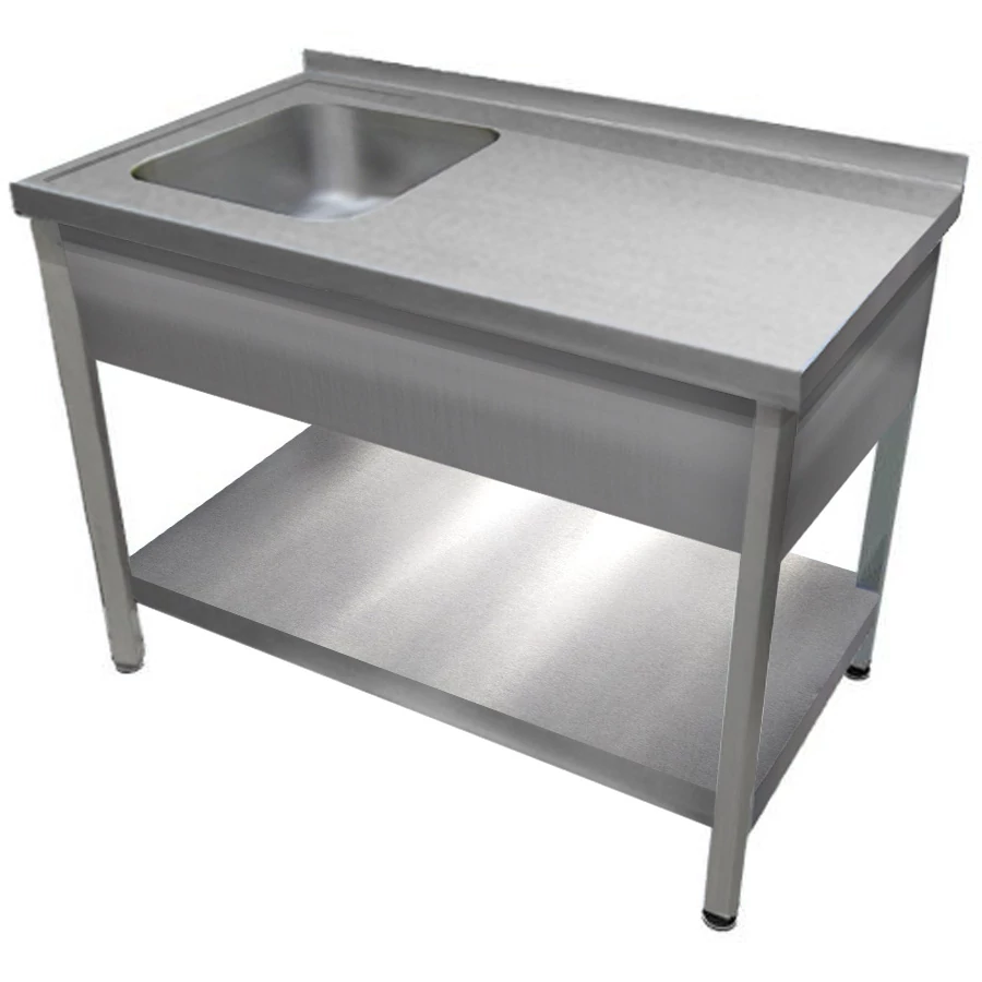 1000mm 1 medencés nagykonyhai mosogató jobb oldali csepegtetővel, 500x400x250mm medencével, lábra állítva, takaróköpennyel, polccal, r.m. acél