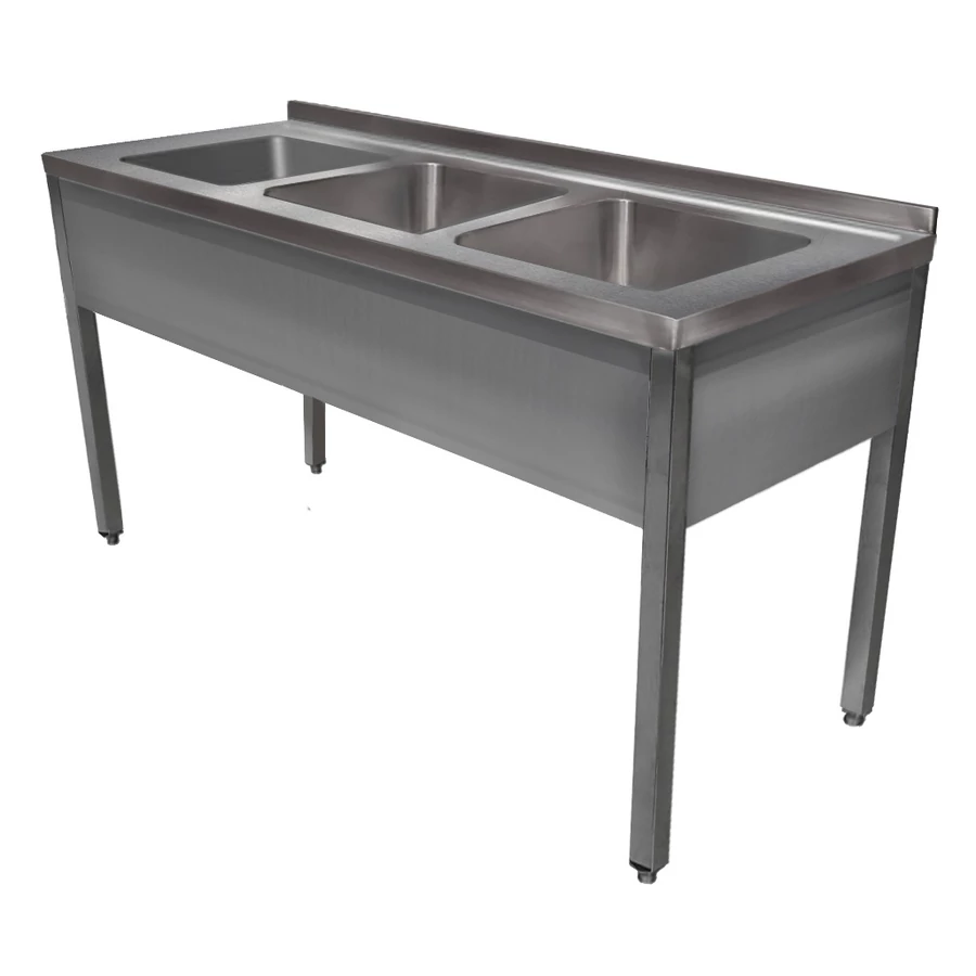 1400mm 3 medencés nagykonyhai mosogató 400x500x250mm medencékkel, lábra állítva, r.m. acél