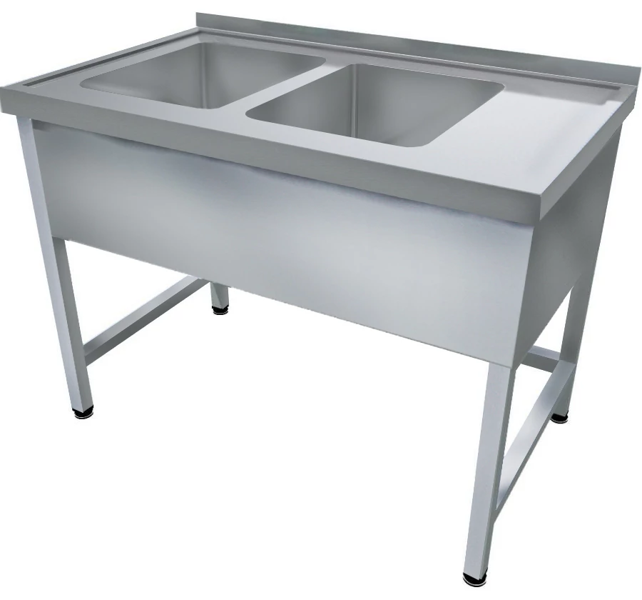 1200mm 2 medencés nagykonyhai mosogató 500x600x300mm medencékkel, lábra állítva, takaróköpennyel, r.m. acél