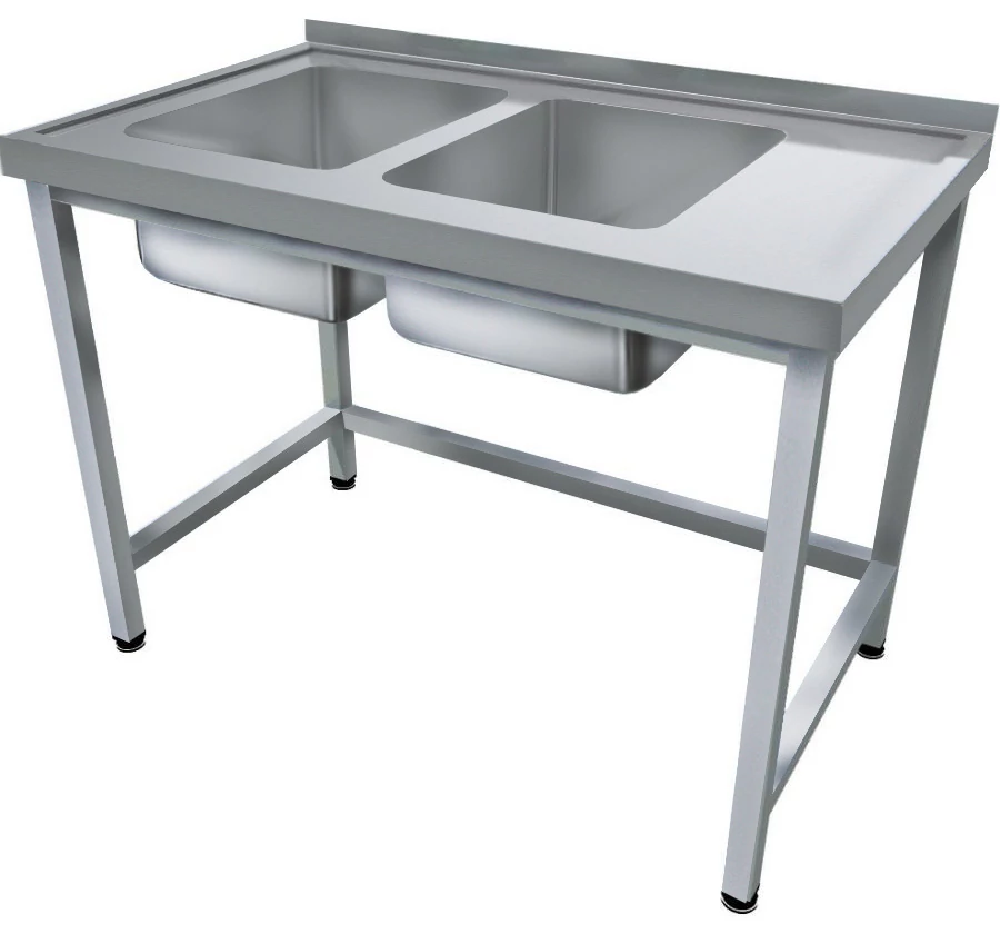 1200mm 2 medencés nagykonyhai mosogató 500x500x300mm medencékkel, lábra állítva, takaróköpennyel, r.m. acél