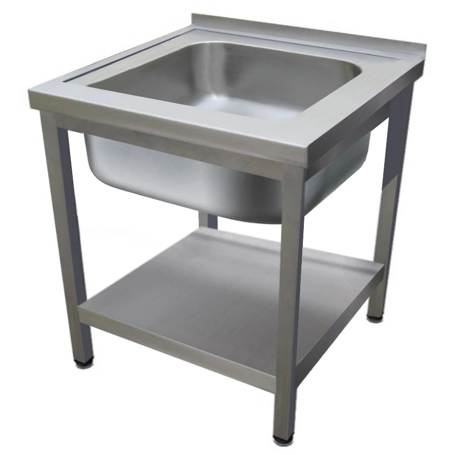 600mm 1 medencés nagykonyhai mosogató 500x500x300mm medencével, lábra állítva, r.m. acél