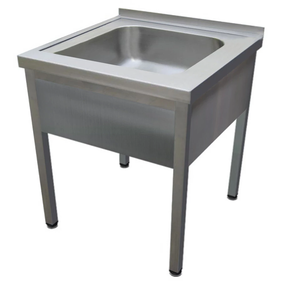 600mm 1 medencés nagykonyhai mosogató 500x500x300mm medencével, lábra állítva, takaróköpennyel, polccal, r.m. acél