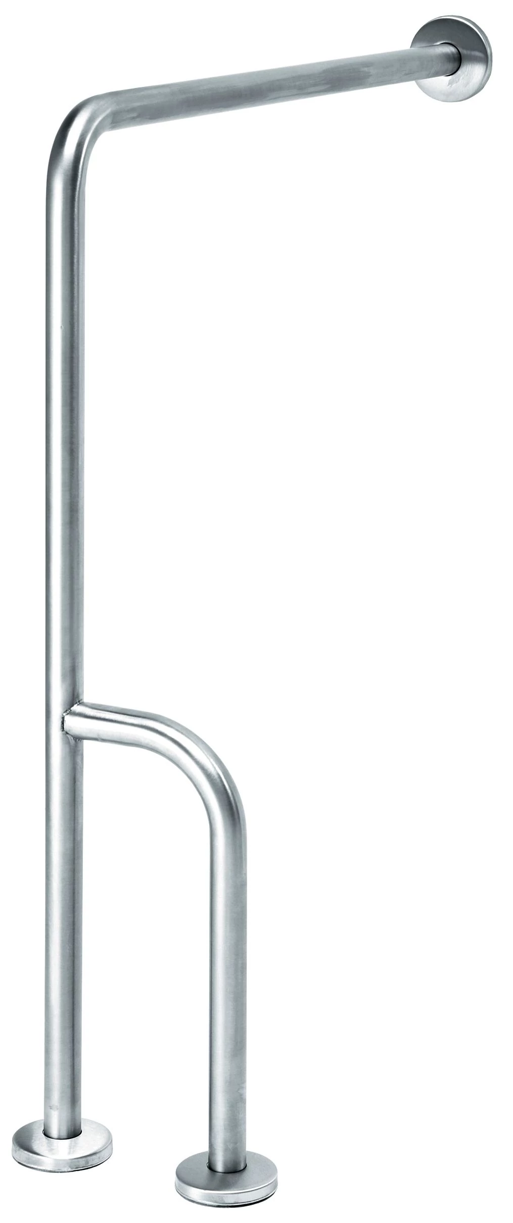 90°-os falra és padlóra rögzített kapaszkodó, fényes, jobbos