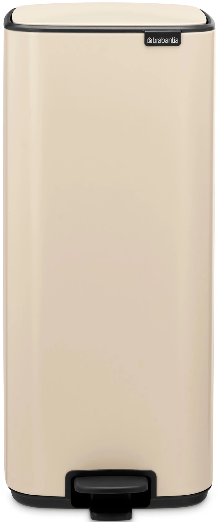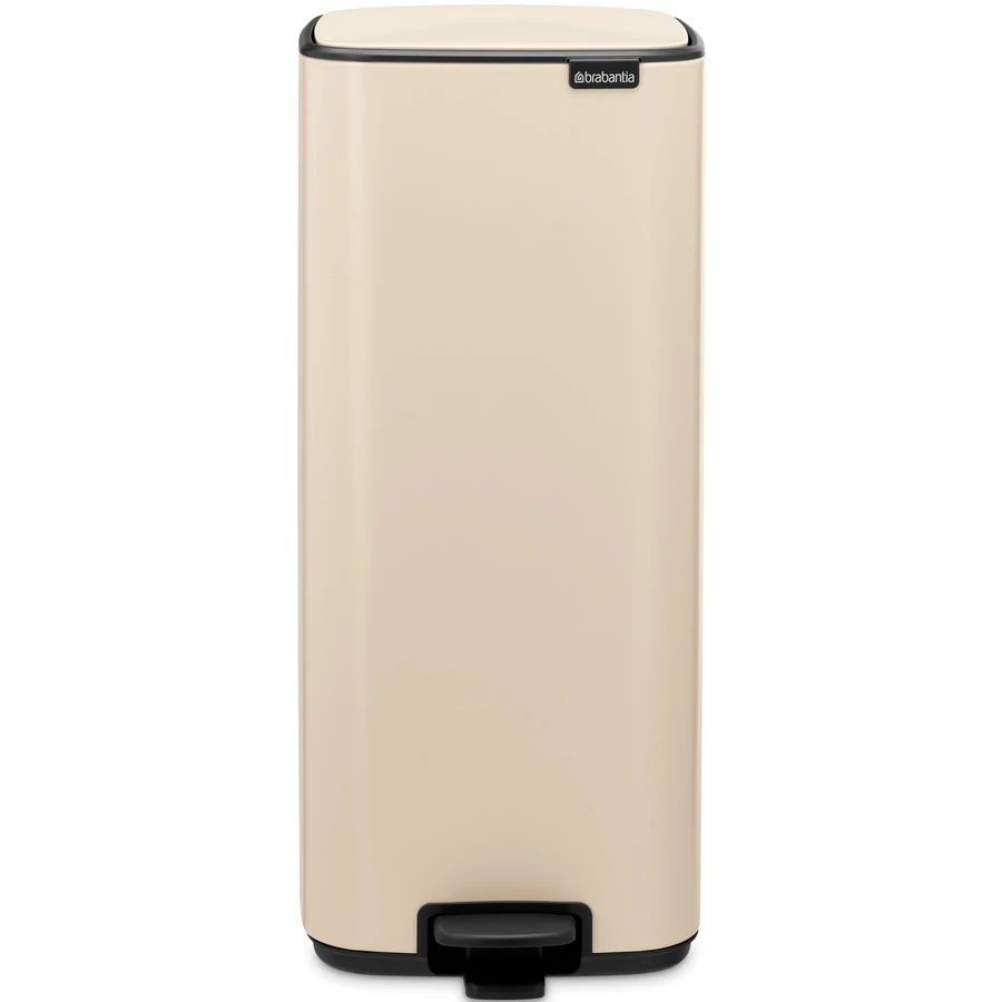 Brabantia Bo Pedal Bin pedálos hulladékgyűjtő szagmentesen záródó Soft-Close fedél, karcsú, négyzetes forma, műanyag tartály, 30L - O méret, acél, világos bézs - 238123