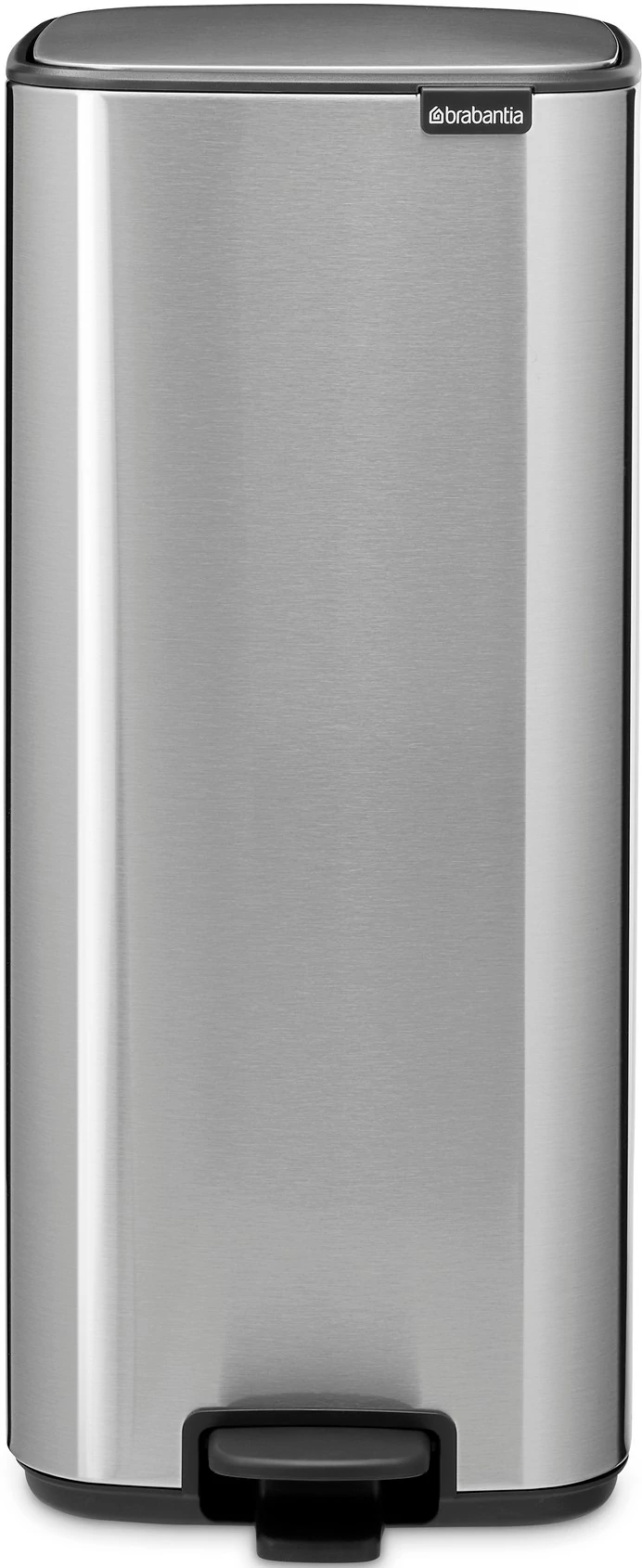 Brabantia Bo Pedal Bin pedálos hulladékgyűjtő szagmentesen záródó Soft-Close fedél, karcsú, négyzetes forma, műanyag tartály, 30L - O méret, r.m. acél, selyem matt ujjlenyomatmentes - 238147