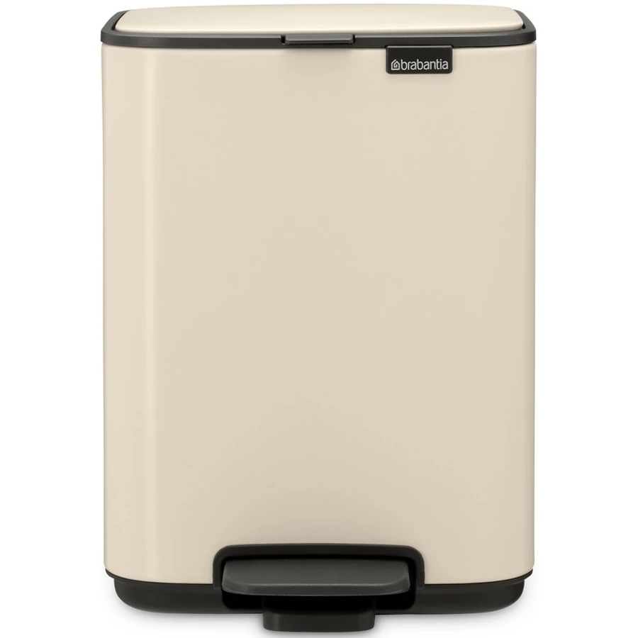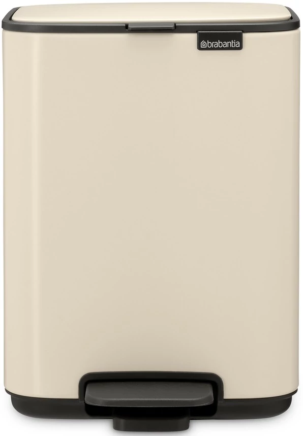 Brabantia Bo Pedal Bin pedálos hulladékgyűjtő szagmentesen záródó Soft-Close fedél, karcsú, négyzetes forma, műanyag tartály, 4L - A méret, acél, világos bézs - 237829