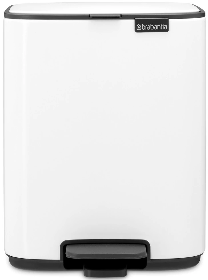 Brabantia Bo Pedal Bin pedálos hulladékgyűjtő szagmentesen záródó Soft-Close fedél, karcsú, négyzetes forma, műanyag tartály, 7L - B méret, acél, fehér - 236884