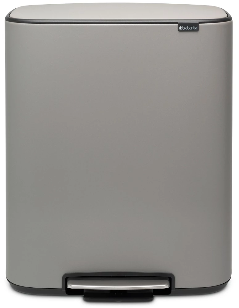 Brabantia Bo Pedal Bin pedálos hulladékgyűjtő szagmentesen záródó Soft-Close fedél, műanyag tartály, 60L - M méret, acél, betonszürke ásványi textúra - 211348