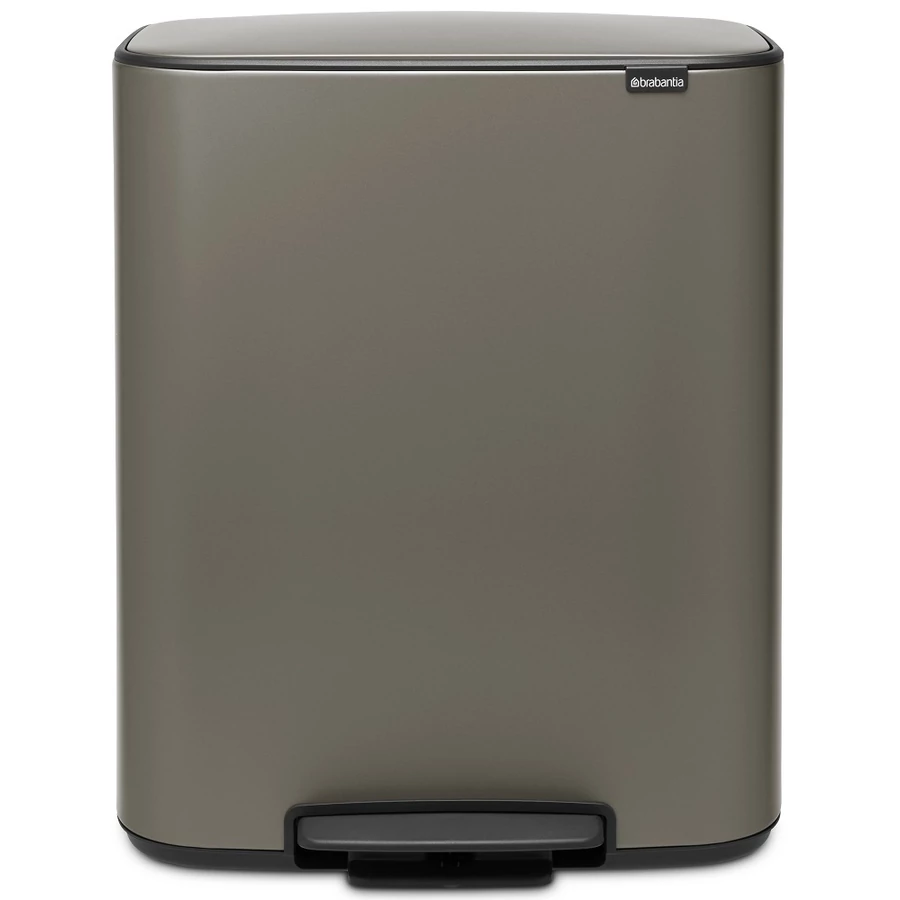 Elegáns platinaszürke Brabantia Bo Pedal Bin hulladékgyűjtő 60 literes kapacitással. A kiemelhető műanyag tartály, lágy pedálműködés és halk záródás praktikussá teszi a mindennapos használatot. Időtálló megoldás, amely tökéletesen illeszkedik modern otthonába vagy irodai környezetbe.