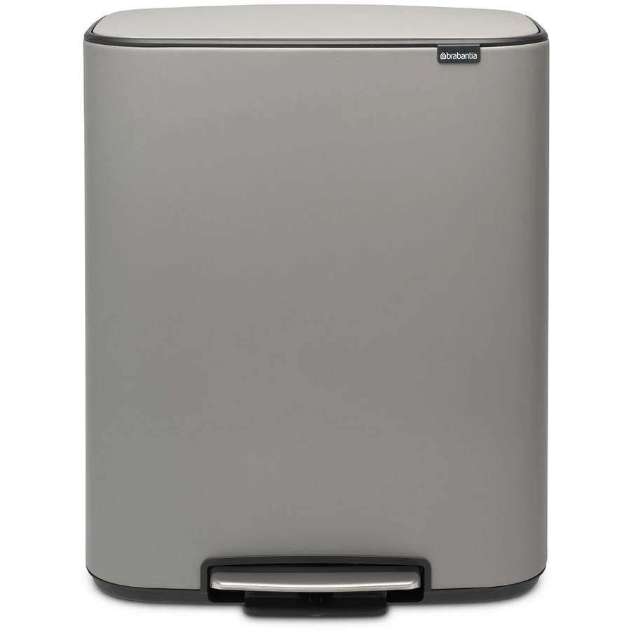 Brabantia Bo Pedal Bin pedálos szelektív hulladékgyűjtő szagmentesen záródó Soft-Close fedél, műanyag tartály, 2x30L - O méret, acél, betonszürke ásványi textúra - 211485