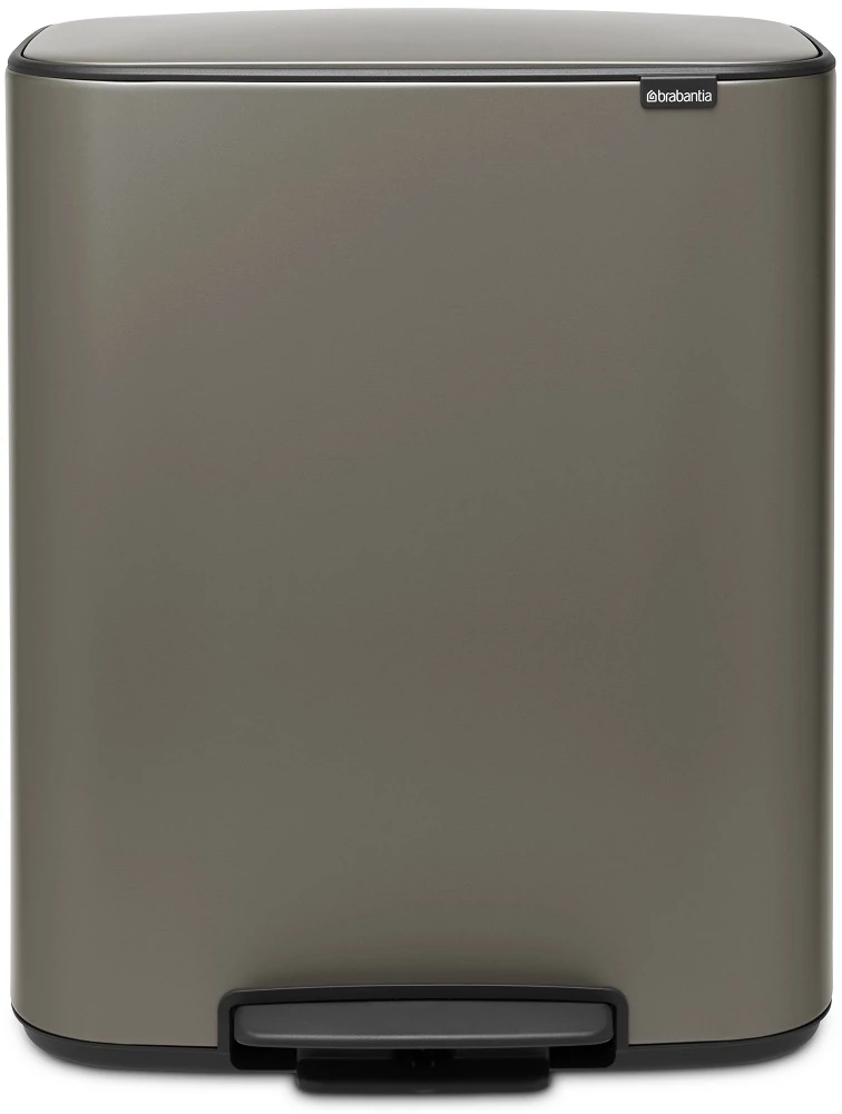 Brabantia Bo Pedal Bin pedálos szelektív hulladékgyűjtő szagmentesen záródó Soft-Close fedél, műanyag tartály, 2x30L - O méret, acél, platinaszürke - 211546