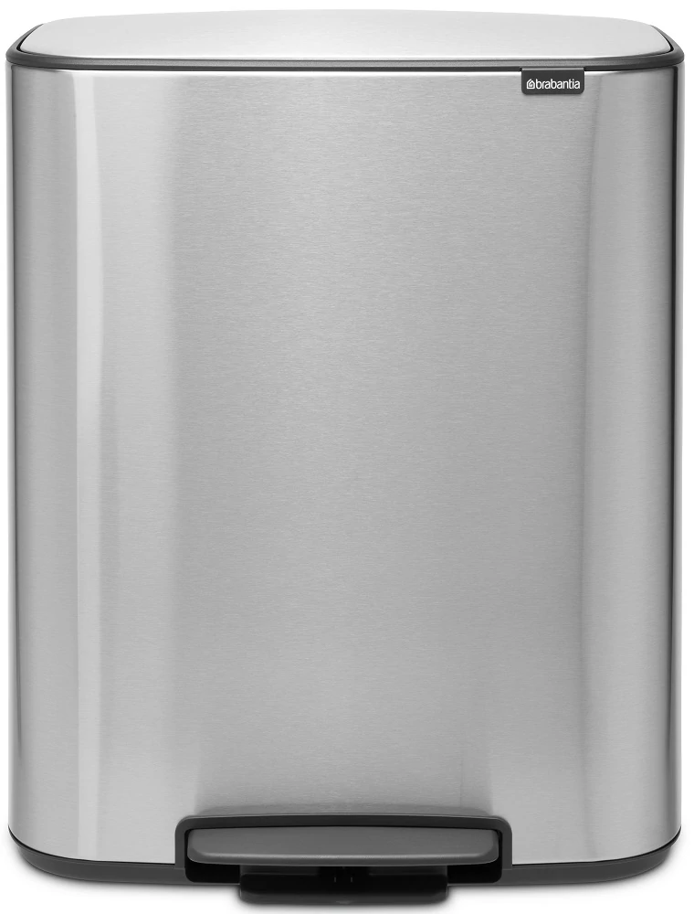 Brabantia Bo Pedal Bin pedálos szelektív hulladékgyűjtő szagmentesen záródó Soft-Close fedél, műanyag tartály, 2x30L - O méret, r.m. acél, selyem ujjlenyomatmentes - 211461