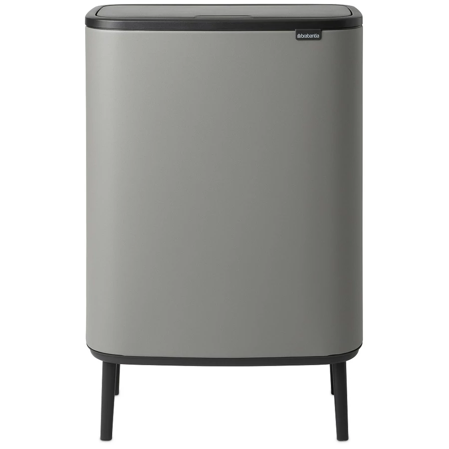 Brabantia Bo Touch Bin Hi hulladékgyűjtő Soft-Close fedéllel, magasított, lábakon álló, műanyag tartály, XXL, 60L - M méret, acél, betonszürke ásványi textúra - 130281