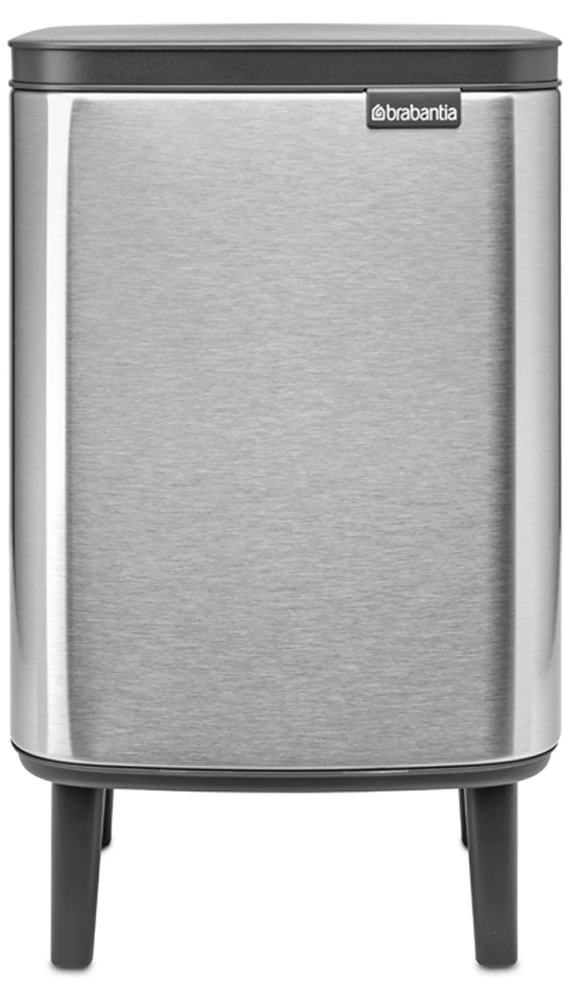 Brabantia Bo Waste Bin Hi hulladékgyűjtő felnyitható, Soft-Close fedéllel, magasított, lábakon álló, műanyag tartály, 7L - B méret, r.m. acél, selyem ujjlenyomatmentes - 227189