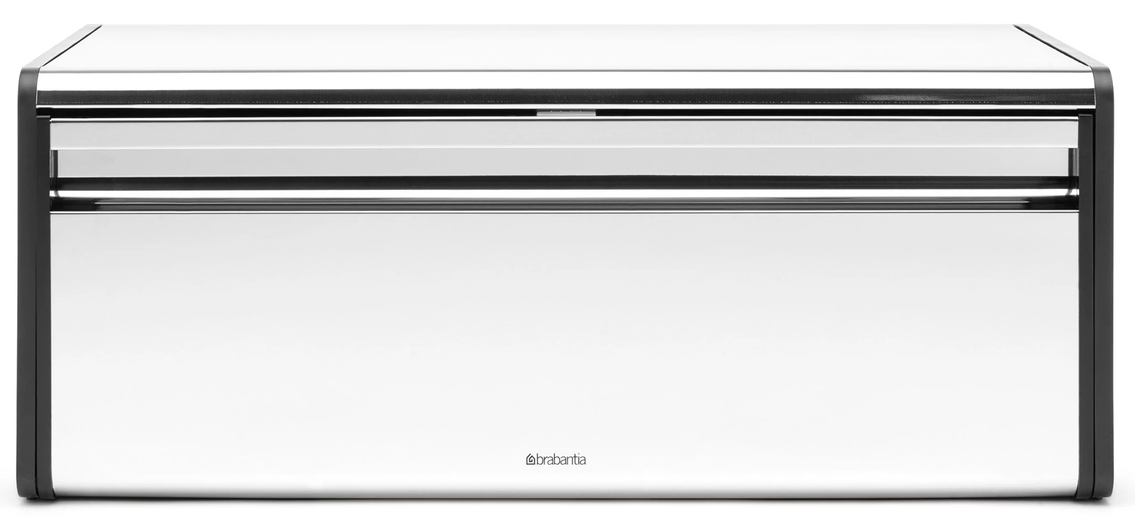 Brabantia Fall Front kenyértartó lehajtható ajtóval, mágneses zárral, sík tetővel, szögletes, 465mm széles, r.m. acél, selyem matt - 236709