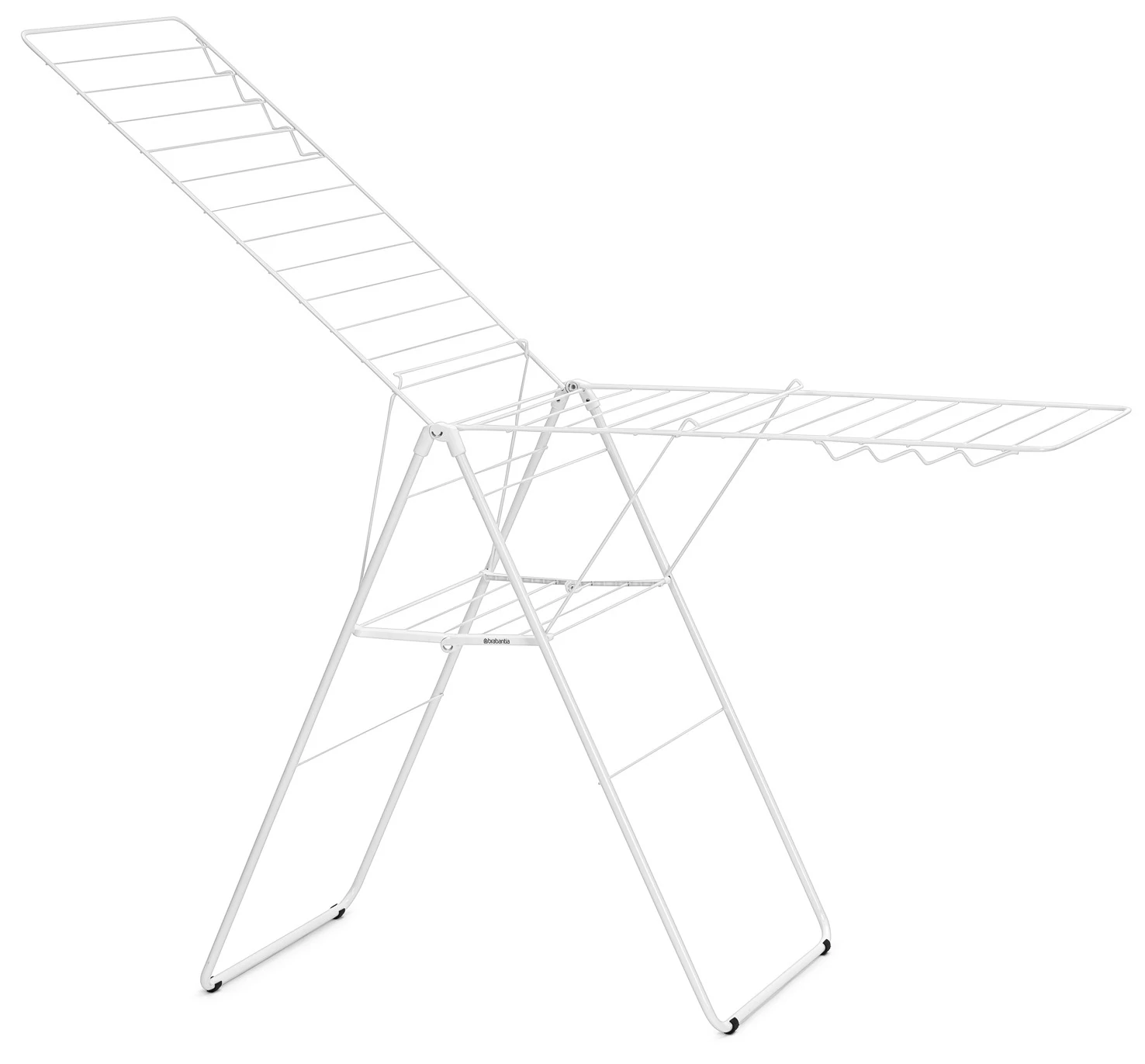 A Brabantia HangOn ruhaszárító állvány teljes felülete vízszintes állásba kinyitható, így tökéletesen alkalmas nagy méretű, kényes ruhák és textilek gyűrődésmentes szárítására. Ez különösen hasznos olyan ruhadaraboknál, amelyeket nem szeretne összehajtogatva szárítani.