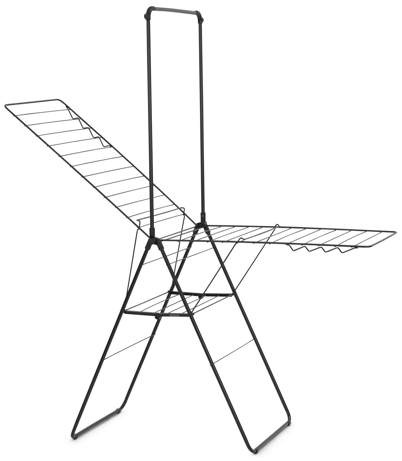 Brabantia HangOn Drying Rack ruhaszárító állvány, 25m szárítási hossz, felhajtható vállfa tartórúddal, 8db ruhaakasztó kampó, 12+10kg teherbírás, összecsukható, acél, matt fekete - 403521