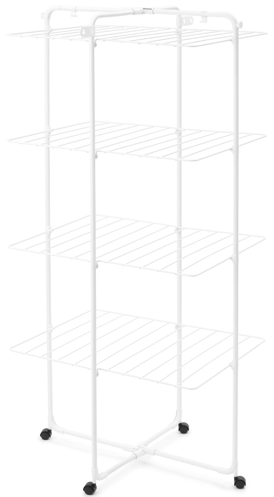 Tapasztalja meg, milyen az, amikor a hatalmas teherbírás könnyedséggel párosul. A Brabantia HangOn Tower 30 méteres fehér kivitele a nagycsaládos háztartások álma: egy olyan térszervezési csoda, amely három mosógépnyi ruhát képes elnyelni, miközben ragyogó fehér megjelenésével frissességet és tágas térérzetet visz a legkisebb helyiségbe is.