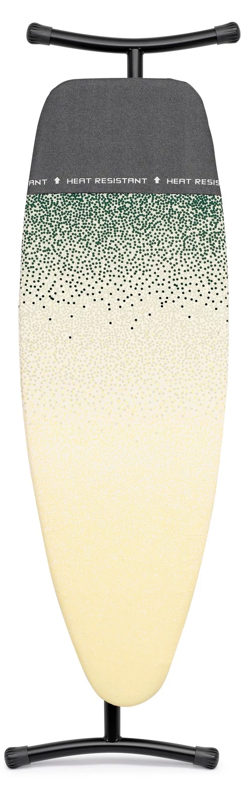 A prémium Brabantia vasalódeszka innovatív hőálló parkolózónával és Fairtrade pamut huzattal rendelkezik. Az extra nagy, 135 x 45 cm-es felület és az állítható magasság gondoskodik a kényelmes vasalásról, míg a stabil kialakítás és a környezetbarát anyagok a tartósságot és fenntarthatóságot biztosítják.