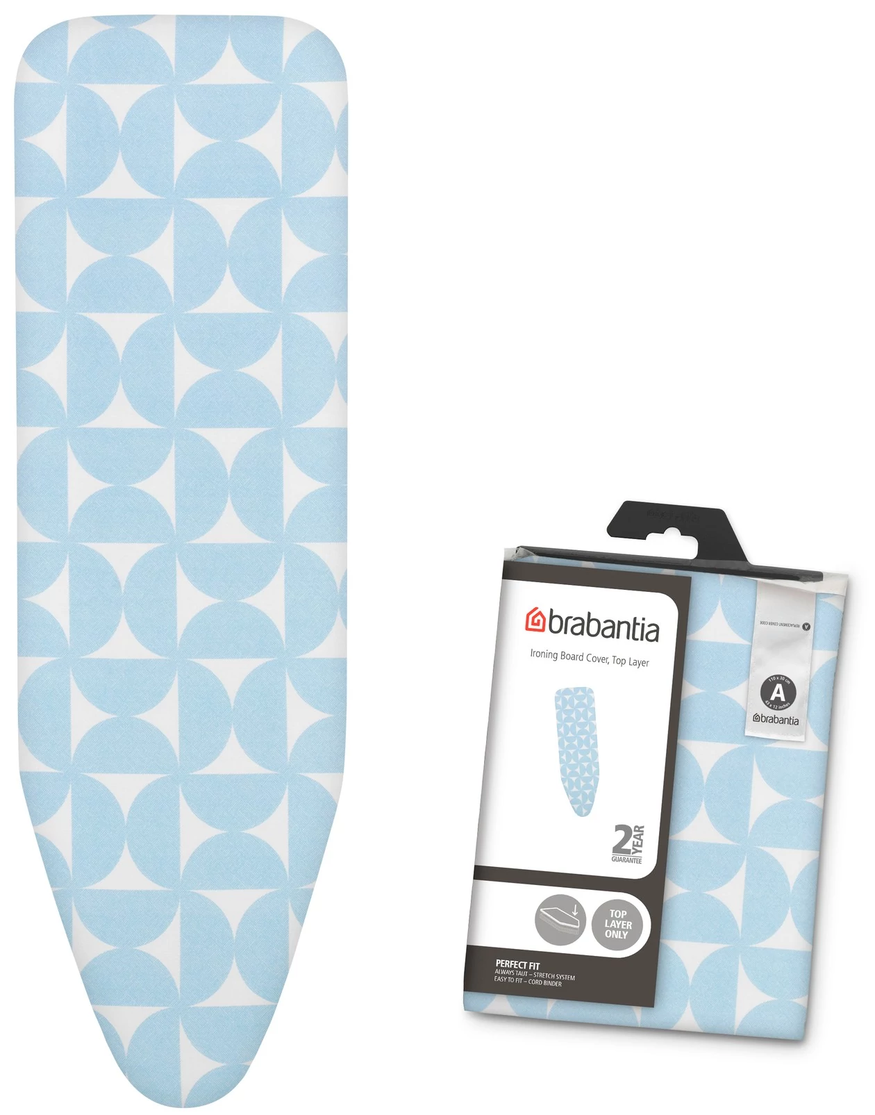 Brabantia Ironing Table Perfect Fit Covers vasalódeszka huzat, 1100x300mm - A méret, felső réteg - huzat + 2mm hab alátét, Fairtrade pamut, újhajnal - 242229