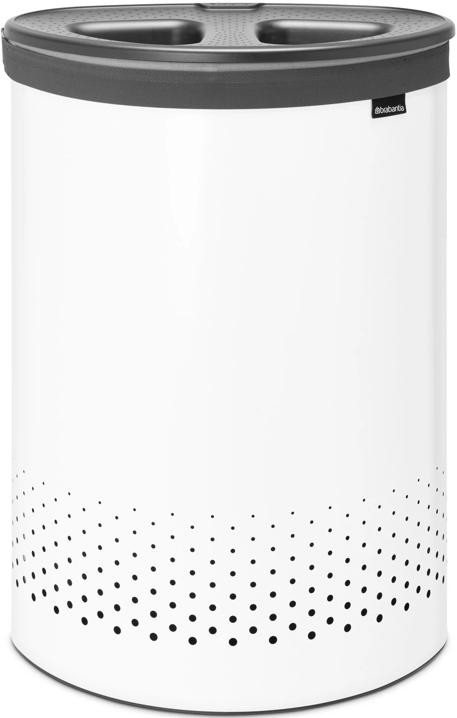 Brabantia Laundry Bin Selector szennyestartó szellőző nyílásokkal, 2 részes tépőzáras szennyesgyűjtő zsák, ovális forma, nagy méret 55L (2x27,5L), műanyag fedő, acél, fehér - 304903