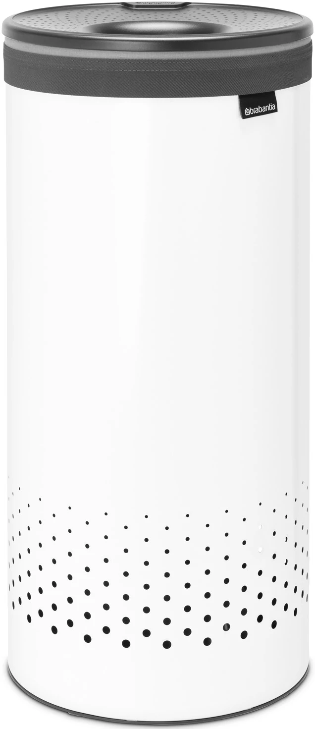 Brabantia Laundry Bin szennyestartó szellőző nyílásokkal, tépőzáras, mosható szennyesgyűjtő zsák, henger forma, közepes méret 35L, műanyag fedő, acél, fehér - 304866