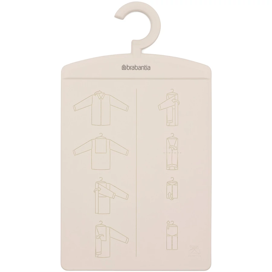 Ezzel a praktikus segédeszközzel pillanatok alatt egyenletesre és bolti precizitással hajthatja össze ingeit, pólóit vagy pulóvereit. A deszkán található világos útmutató segít az optimális hajtogatási méret beállításában, így a ruhák tökéletesen illeszkednek majd a polcra vagy a fiókba. Használaton kívül a rajta lévő akasztó segítségével egyszerűen a szekrénybe függeszthető, elegáns világos bézs színe pedig diszkrét megjelenést kölcsönöz.