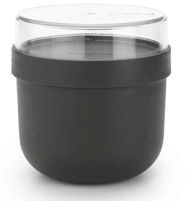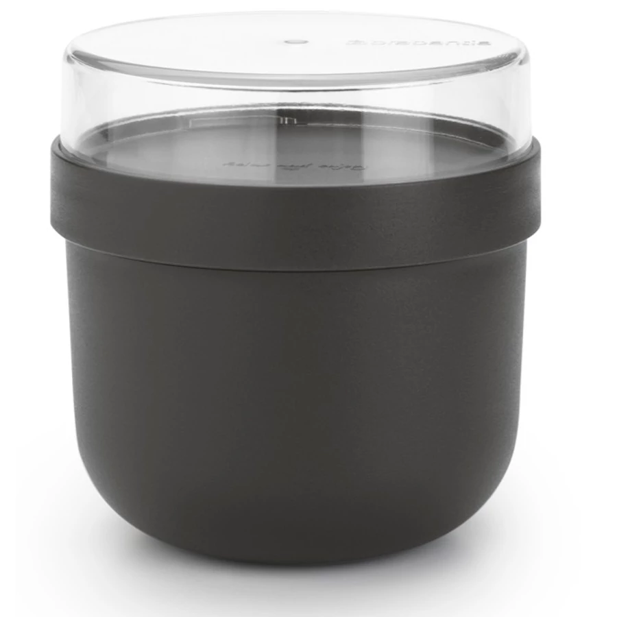 A Brabantia Make & Take reggelizőtál a tökéletes megoldás az egészséges reggeli útközben történő elfogyasztásához. Az 500 ml-es főtartály és a 180 ml-es külön tárolórekesz ideális müzlik, joghurtok és gyümölcsök szállításához. Szivárgásmentes kialakítása és a stílusos sötétszürke szín modern megjelenést kölcsönöz ennek a praktikus ételhordónak.
