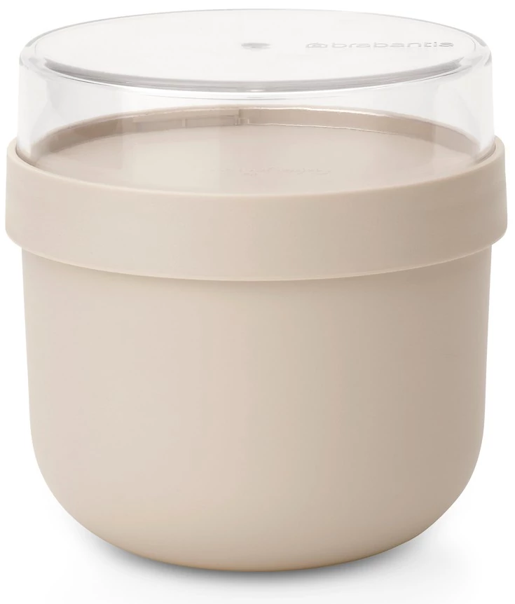Kezdje a napot bárhol kedvenc reggelijével! A Brabantia Make & Take 0,5 literes reggeliző pohara a letisztult világos bézs (Soft Beige) árnyalatban a tökéletes megoldás, ha útközben szeretné élvezni a friss joghurtot müzlivel, zabkását vagy gyümölcsöket.