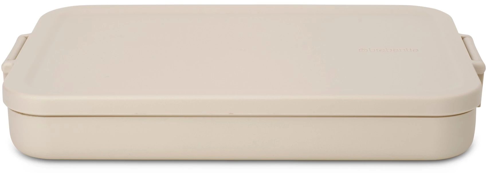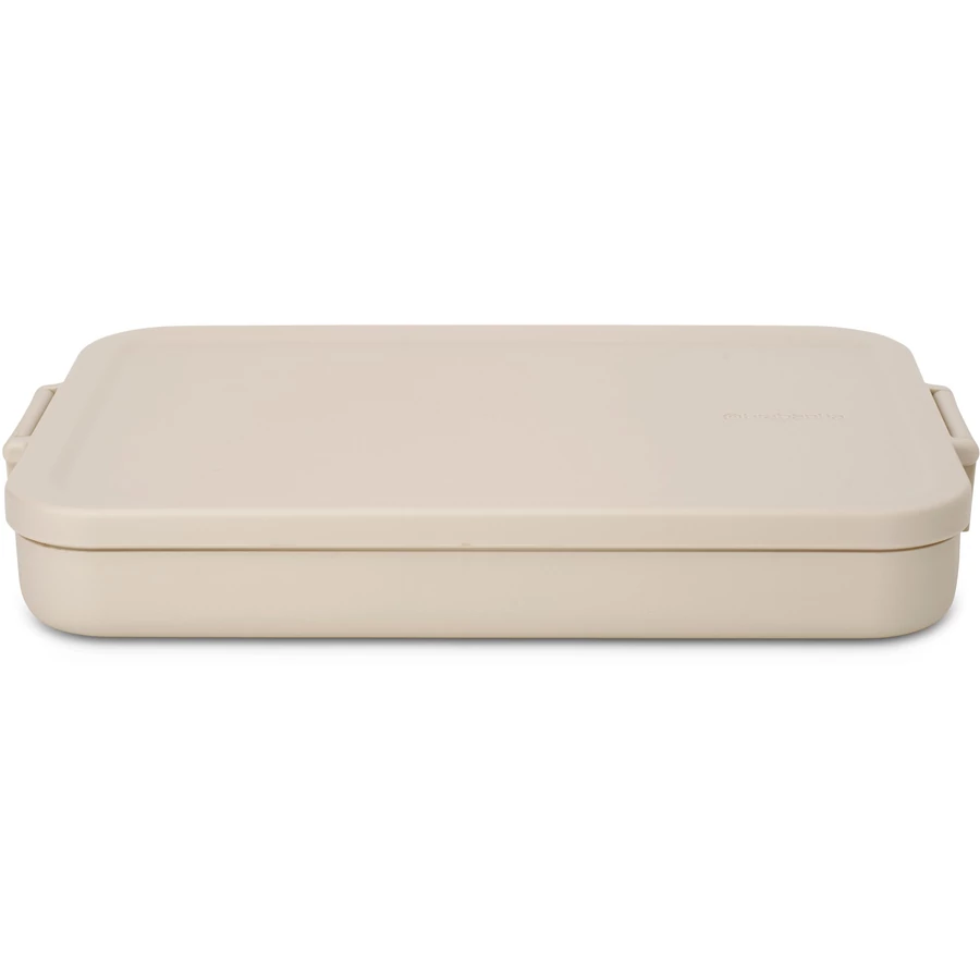 Brabantia Make & Take Flat Lunch Box lapos ételhordozó doboz, 1100 ml, bepattintós (clip-on) zárómechanizmus, BPA mentes műanyag, világos bézs
