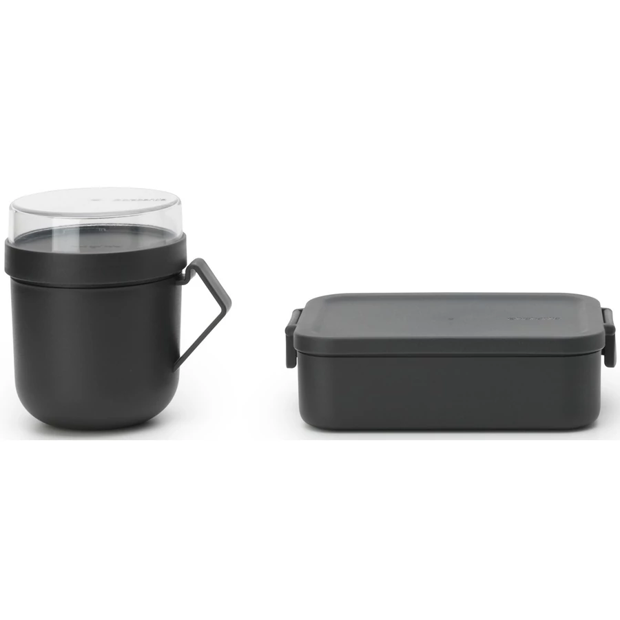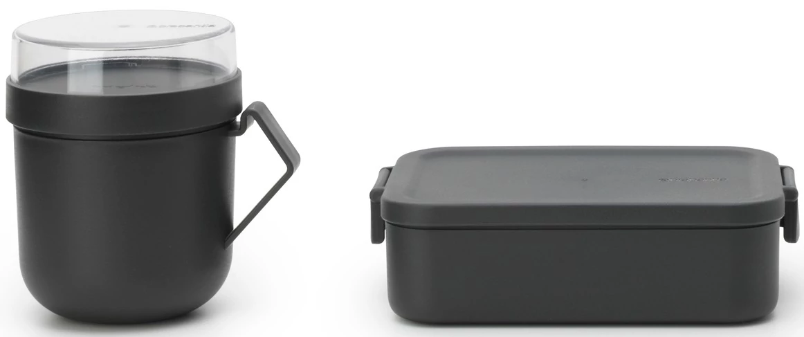 Brabantia Make & Take Lunch Box ételhordozó doboz szett, közepes méretű ételhordozó doboz 1100 ml és leveses bögre 600 ml, sötétszürke - 206665