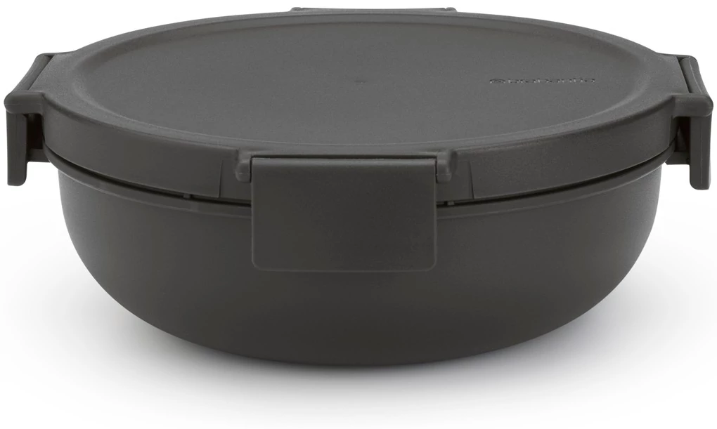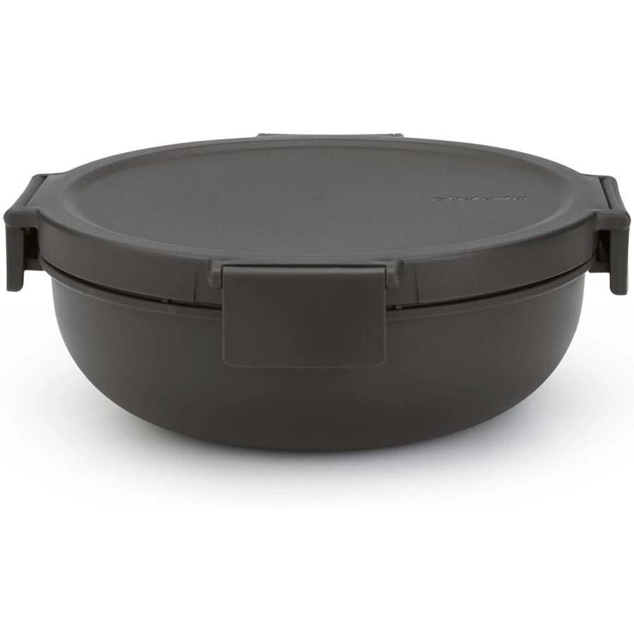 Brabantia Make & Take Salad Bowl salátástál, 1300 ml, szivárgás- és légmentes záródás, bepattintós (clip-on) zárómechanizmus, kerek forma, műanyag, sötétszürke - 206344
