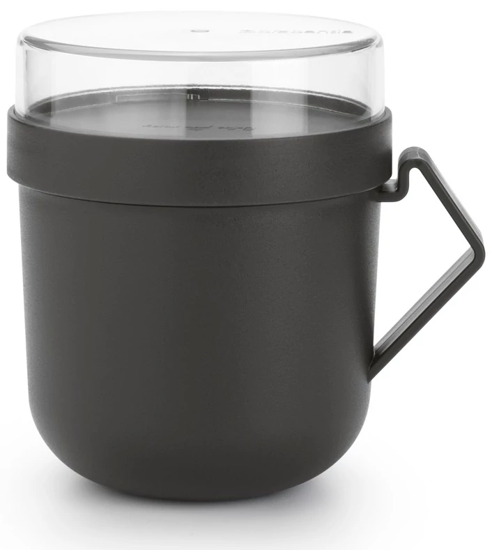 Brabantia Make & Take Soup Mug leveses bögre, 600 ml, hőálló fogantyú, beépített gőzkieresztő szelep, felső tárolórekesz, szivárgás- és légmentes záródás, BPA mentes műanyag, sötétszürke - 203824
