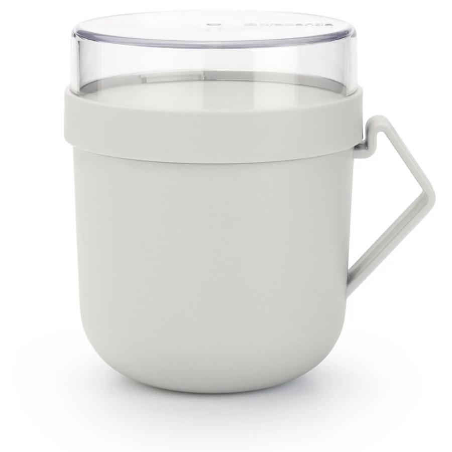 Brabantia Make & Take Soup Mug leveses bögre, 600 ml, hőálló fogantyú, beépített gőzkieresztő szelep, felső tárolórekesz, szivárgás- és légmentes záródás, BPA mentes műanyag, világosszürke - 203848