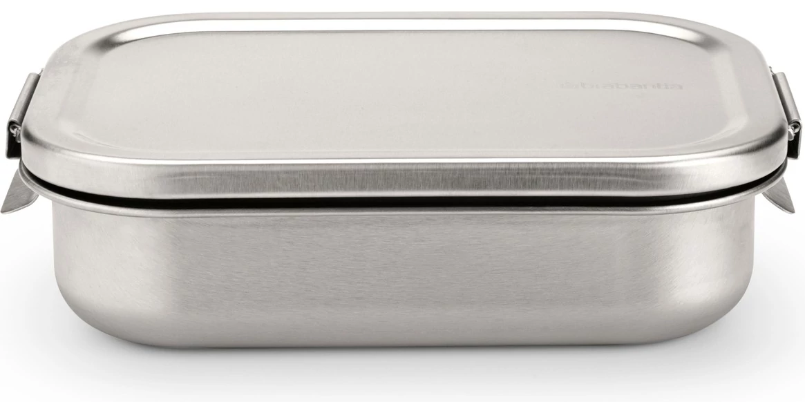 Brabantia Make & Take Travel Lunch Box közepes méretű ételhordozó doboz, 1100 ml, szivárgás- és légmentes záródás, bepattintós (clip-on) zárómechanizmus, r.m. acél, selyem matt - 203589
