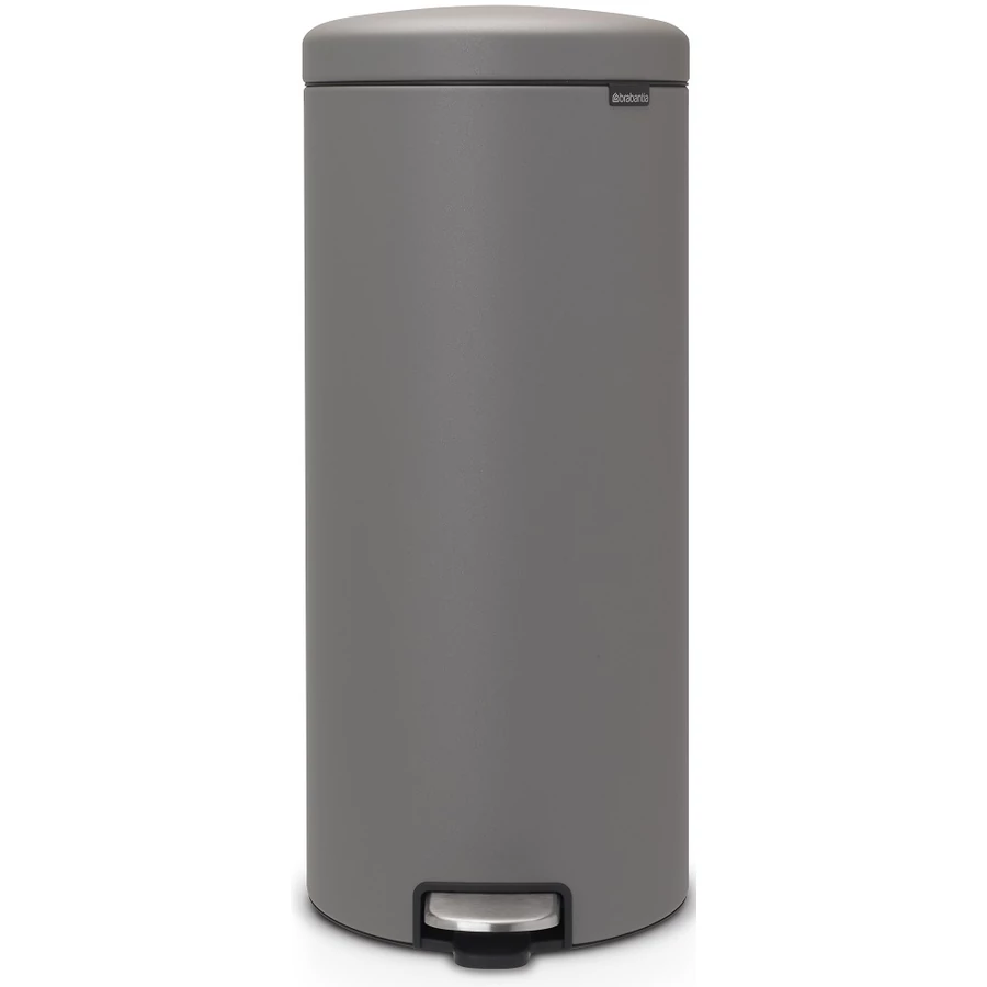 Brabantia NewIcon pedálos hulladékgyűjtő szagmentesen záródó Soft-Close fedél, műanyag tartály, 30L - G méret, acél, betonszürke ásványi textúra - 119187