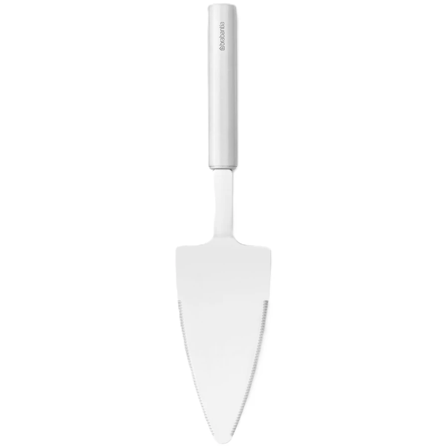 A Brabantia Profile Bake & Mix tortalapát, kétoldali vágóéllel, hőálló, r.m. acél, selyem matt kivitelben tökéletes eszköz torták és pizzák szeleteléséhez és tálalásához. Ez a sokoldalú, kétoldali fogazott élekkel rendelkező szerver mind bal-, mind jobbkezes használatra alkalmas, így mindenki számára kényelmes. A robusztus kialakítás biztos fogást nyújt, míg a kiváló minőségű rozsdamentes acélból készült fej és nyél tartós és elegáns. A varratmentes konstrukció egyszerű tisztítást és higiénikus használatot garantál, ráadásul mosogatógépben is mosható. Fenntartható választás, hiszen 47%-ban újrahasznosított anyagból készült, és használat után 85%-ban újrahasznosítható.