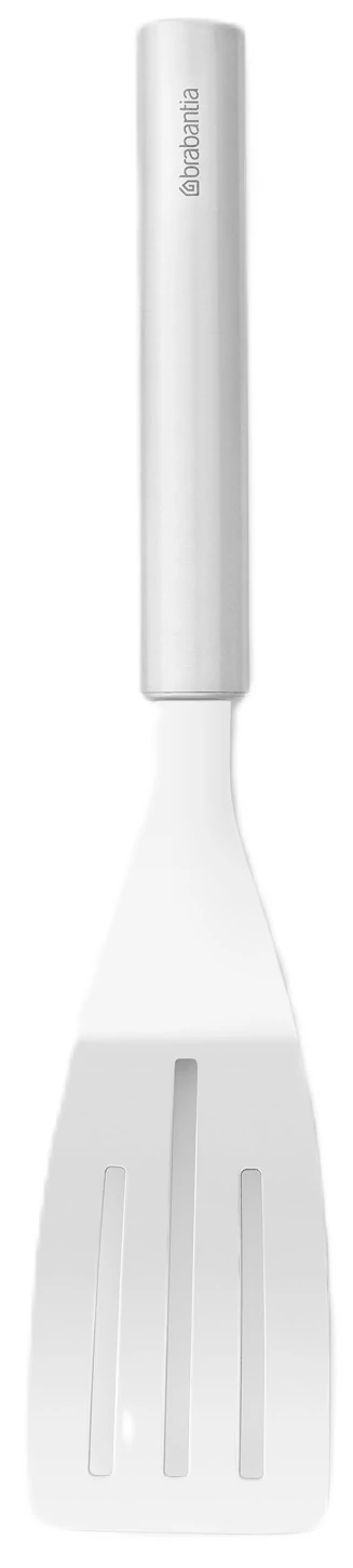 A Brabantia Profile Cook & Serve kis méretű spatula selyem matt kivitelben tökéletes választás tojás, hús, palacsinta vagy más ételek megfordításához és tálalásához. Ez a kompakt spatula okos nyílásokkal rendelkezik, amelyek lehetővé teszik a felesleges zsiradék elvezetését, így egészségesebb ételeket készíthet. A kiváló minőségű rozsdamentes acélból készült penge és fogantyú tartós és elegáns. A varratmentes kialakítás egyszerű tisztítást és higiénikus használatot biztosít, ráadásul mosogatógépben is mosható. Ergonomikus kialakítása kényelmes fogást nyújt, kompakt mérete (5,4 x 26,5 cm) pedig ideális kisebb serpenyőkhöz vagy precíz munkához.