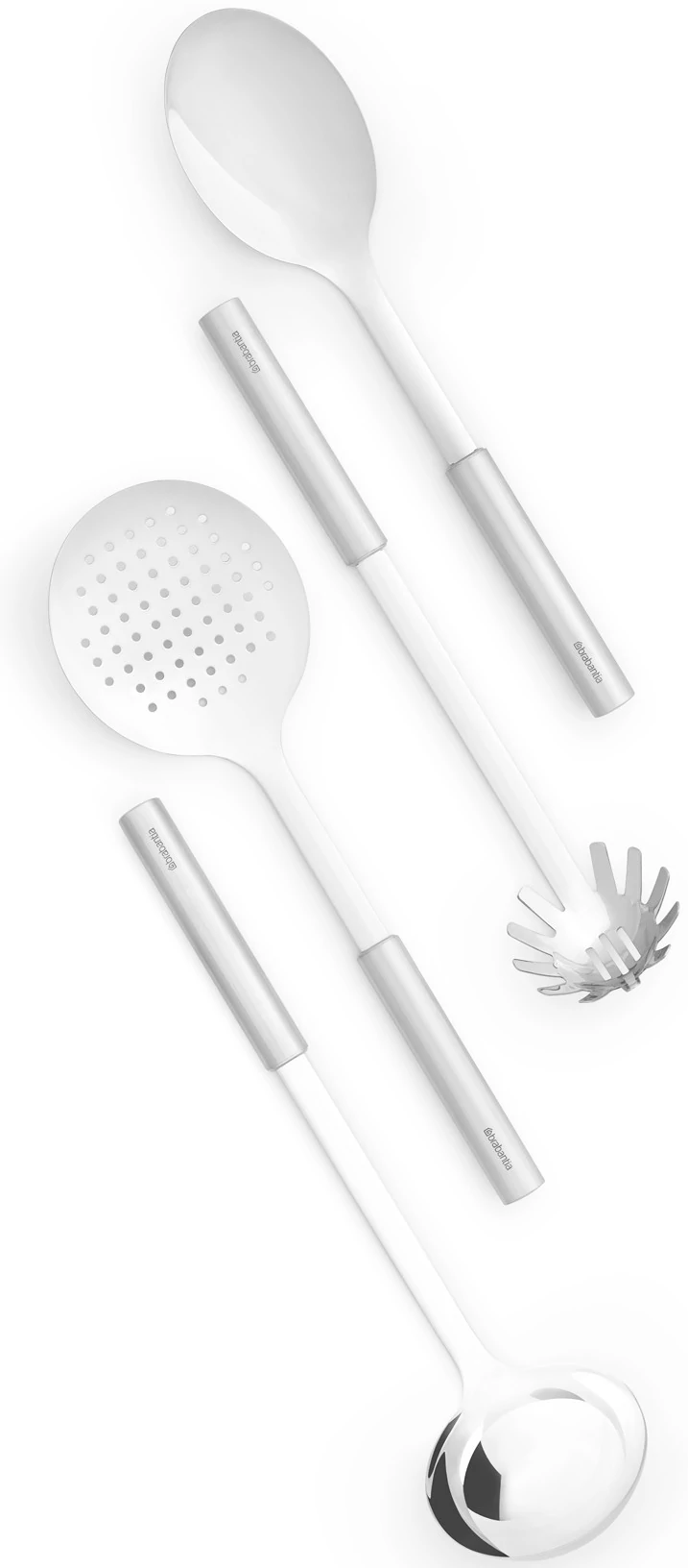 | Kialakítás | könnyen tisztítható higiénikus lekerekített, biztonságos kialakítás ergonomikus szett tartalma: merőkanál, zöldséges kanál, spagettiszedő kanál és szűrőkanál |
