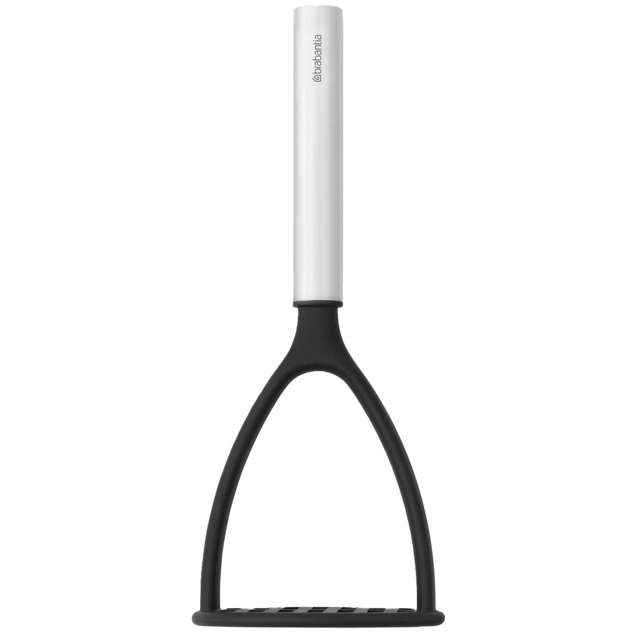 Tegye egyszerűbbé és elegánsabbá a krumplipüré készítését a Brabantia Profile Cook & Serve krumplinyomóval! Ez az ergonomikus kialakítású eszköz tökéletes a krumpli és más zöldségek gyors, egyenletes pépesítéséhez. A hőálló nejlon fej (max. 220°C) kíméletes a tapadásmentes edényekhez, nem karcolja azok felületét. A selyem matt acél nyél nemcsak stílusos, hanem kényelmes fogást is biztosít, tartós használatra tervezve. Mosogatógépben tisztítható, és 5 év garanciával rendelkezik, így hosszú távú megbízhatóságot kínál. Kerülje az erős ételszínezékek (pl. kurkuma) használatát a foltok elkerülése érdekében. Környezetbarát választás: 19% újrahasznosított anyagból készült, és 76%-ban újrahasznosítható. A Brabantia Profile kollekció elengedhetetlen darabja!