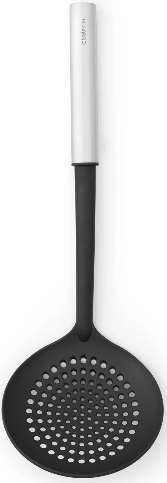 Emelje konyháját új szintre a Brabantia Profile Cook & Serve szűrőkanállal! Ez az ergonomikus kialakítású szűrőkanál tökéletes választás ételek kiemelésére és lecsepegtetésére, legyen szó zöldségekről, tésztáról vagy sült ételekről. A hőálló nejlon fej (max. 220°C) kíméletes a tapadásmentes edényekhez, nem karcolja azok felületét. A selyem matt acél nyél stílusos, kényelmes fogást biztosít, és tartós használatot garantál. Mosogatógépben tisztítható, 5 év garanciával rendelkezik, így hosszú távon megbízható társ a konyhában. Kerülje az erős ételszínezékek (pl. kurkuma) használatát a foltok elkerülése érdekében. Környezetbarát: 19% újrahasznosított anyagból készült, és 76%-ban újrahasznosítható. A Brabantia Profile kollekció nélkülözhetetlen darabja!