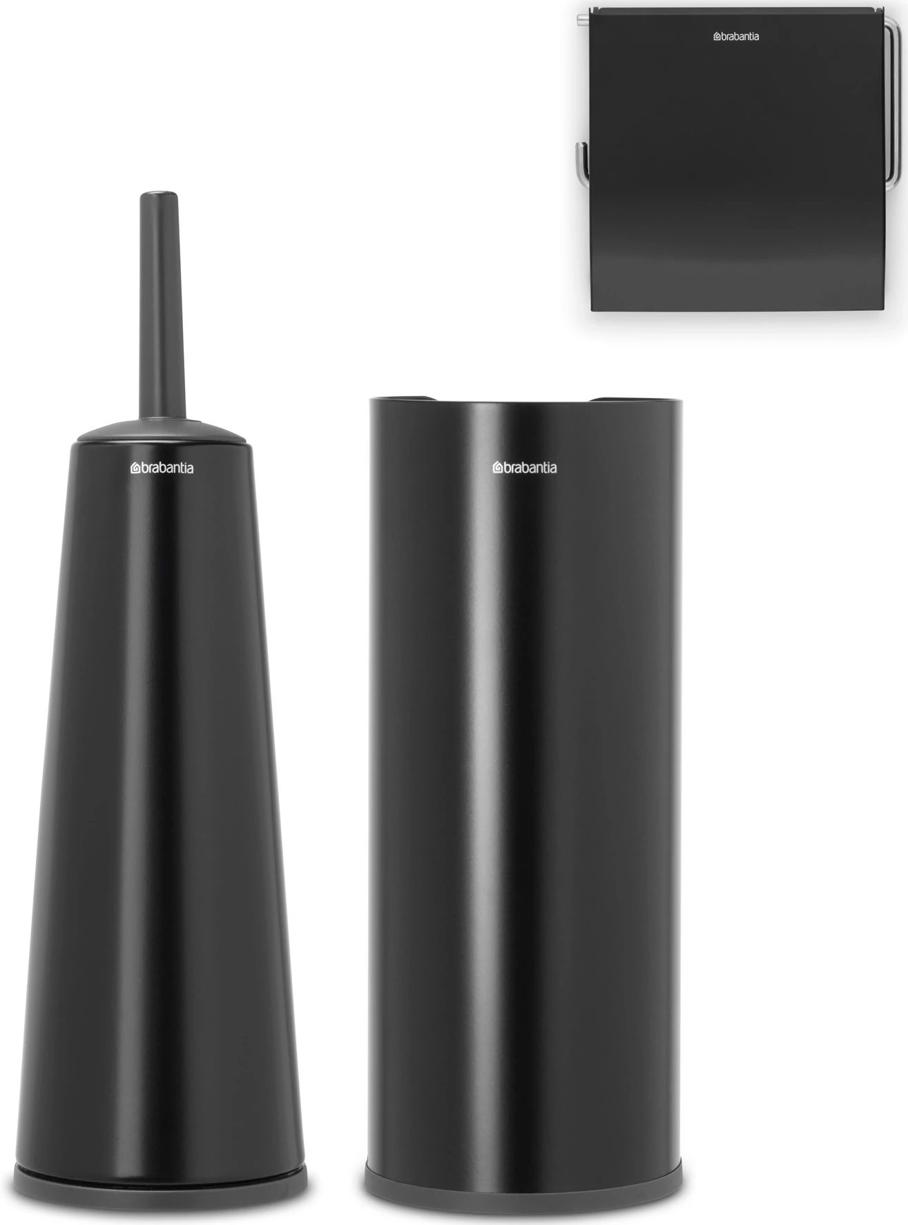 Brabantia ReNew 3db-os WC pipere csomag, WC-kefe, WC-papír és tartalék WC-papír tartó, acél, matt fekete - 280603