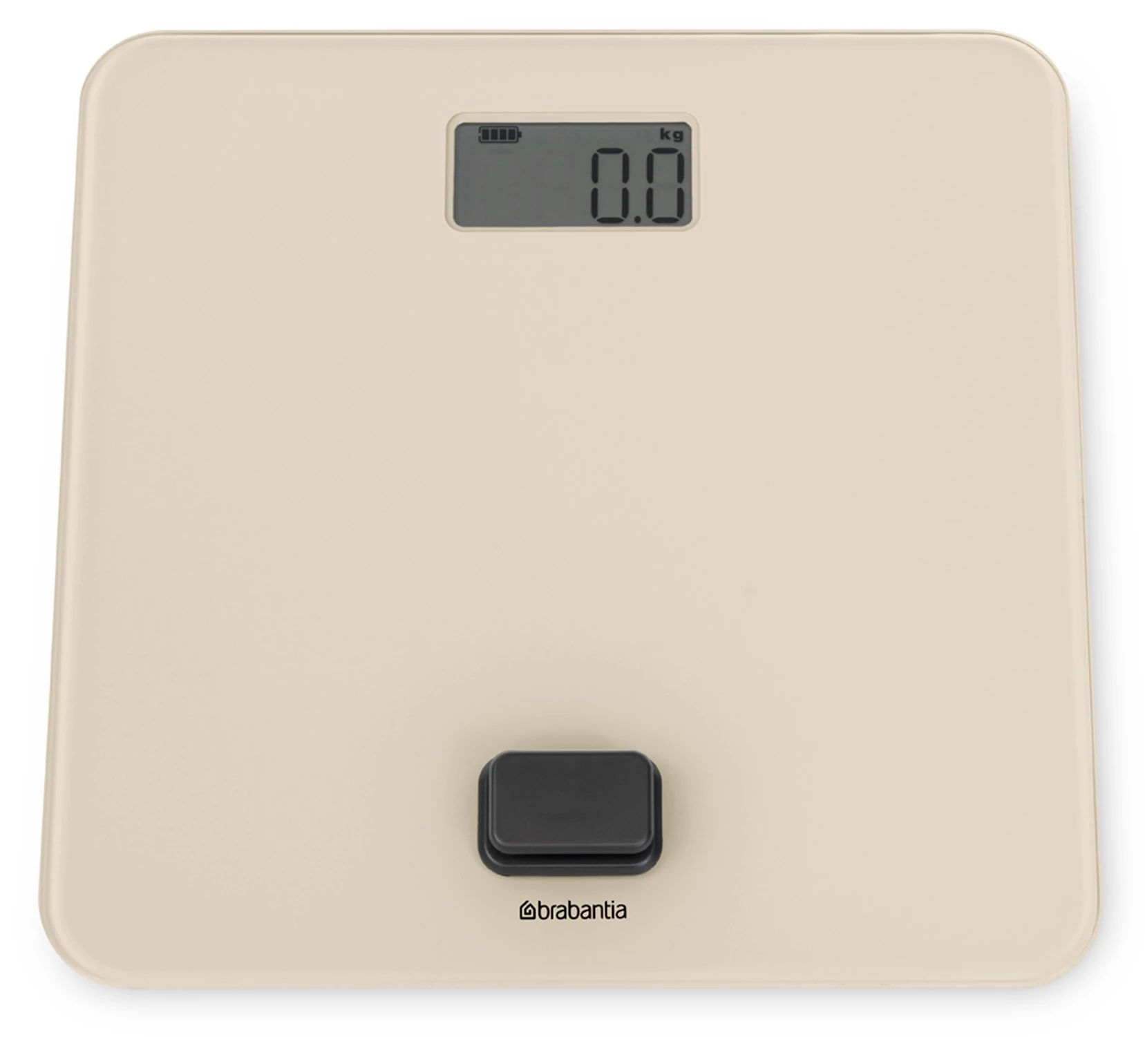 Brabantia ReNew elemmentes fürdőszobai mérleg, 5-150kg között, 0,1kg pontossággal mér, nagy LED kijelzővel, dimanóval tölthető, műanyag test, üveg fedlap, világos bézs - 223525