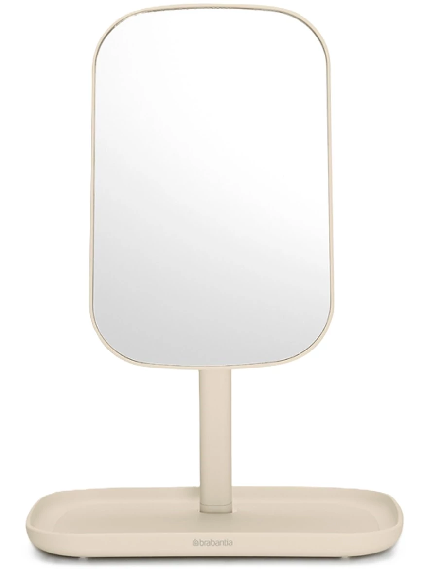 Brabantia ReNew Mirror with Storage Tray álló piperetükör alsó kozmetikai tálcával, szilikon betéttel, 360°-ban állítható üveg tükörrel, világos bézs - 223488