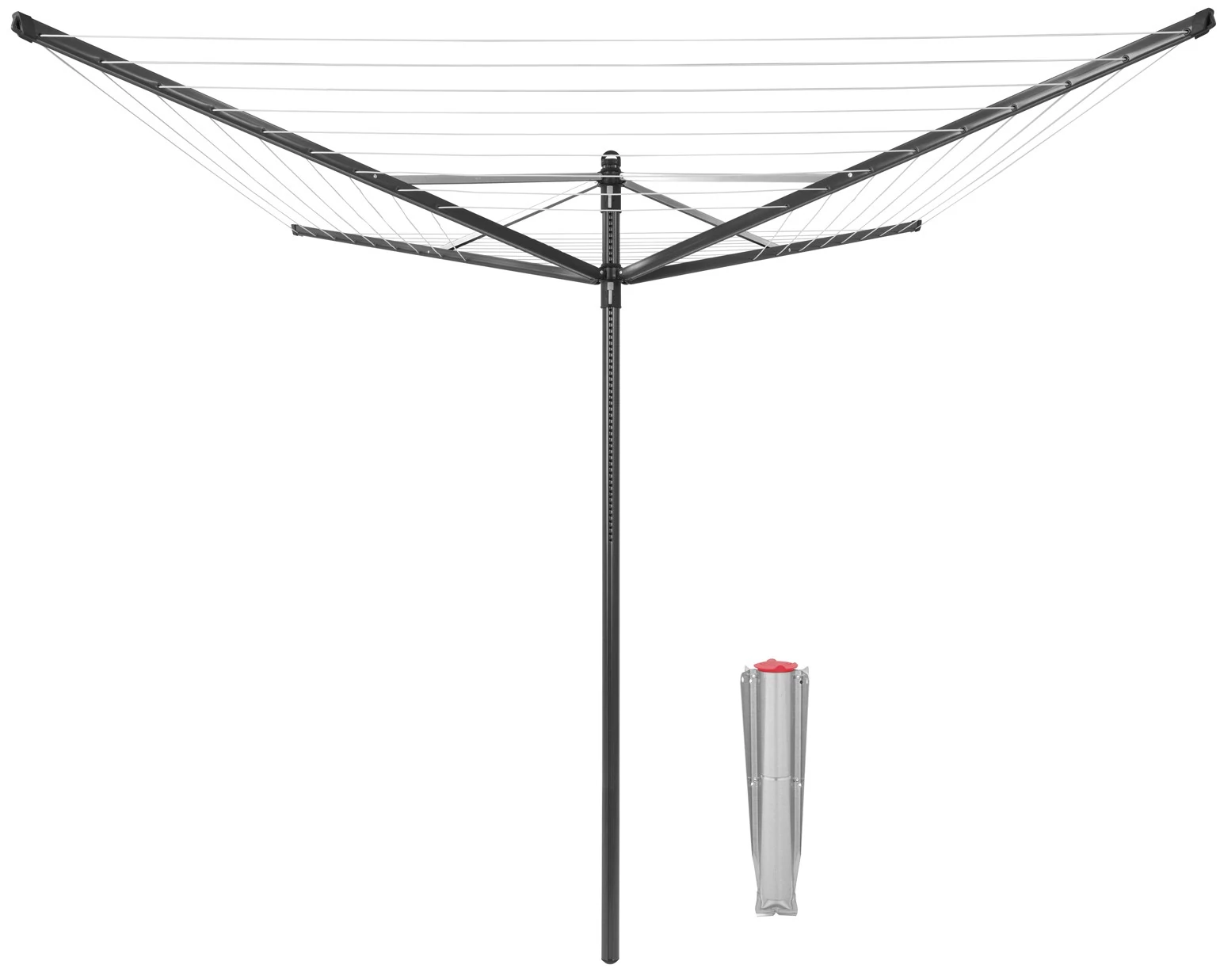 Brabantia Rotary Dryer Lift-O-Matic kerti ruhaszárító 50m, UV-álló, forgatható, D=45mm, állítható magasság, rögzítése földbe szúrható fém konzollal, antracit - 290428