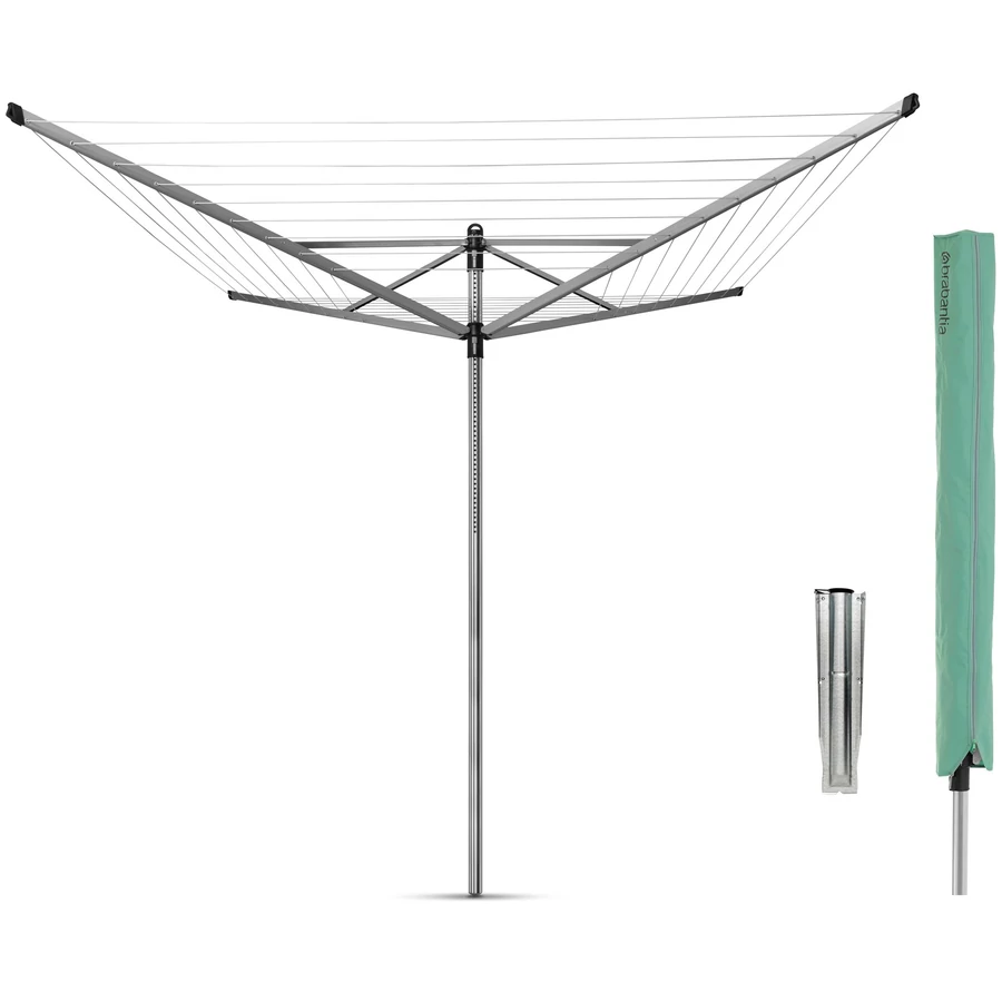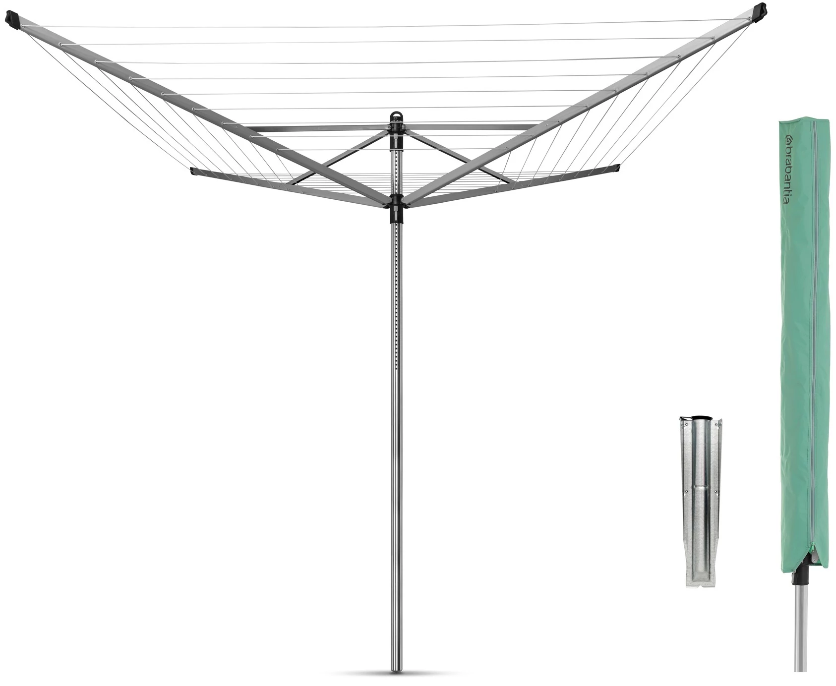Brabantia Rotary Dryer Lift-O-Matic kerti ruhaszárító 60m, UV-álló, forgatható, D=45mm, állítható magasság, rögzítése földbe szúrható fém konzollal, védőzsákkal, metál szürke - 311048