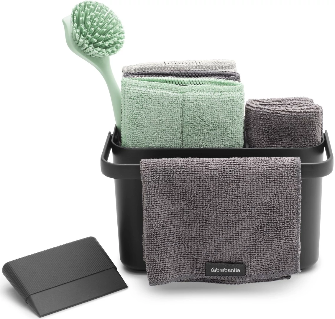 Fedezze fel a tökéletes konyhai tisztítócsomagot: a sötétszürke Brabantia SinkSide szett egy praktikus tároló caddy-vel érkezik, amely rendezetten tartja eszközeit. A strapabíró mosogatókefe könnyedén elbánik az edényekre tapadt szennyeződésekkel, míg az ergonomikus ablaktörlő csíkmentes ragyogást biztosít az üvegfelületeken. A szett 3 mikroszálas tisztítópárnát és 2 mikroszálas törlőkendőt is tartalmaz, amelyek hatékonyan távolítják el a zsírt és a foltokat minden felületről. Kompakt, stílusos és tartós – a Brabantia minősége a modern konyhák elengedhetetlen társa.