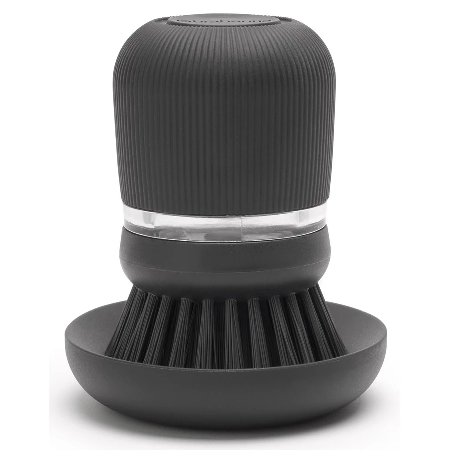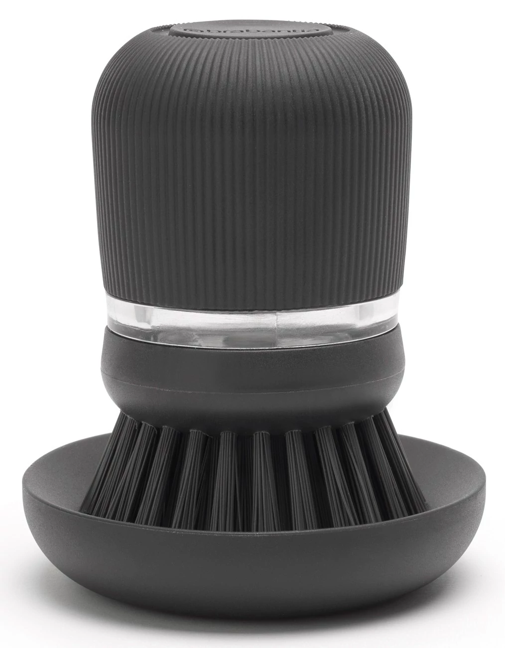 A mosogatószer adagolóval integrált Brabanti mosogatókefe egy praktikus konyhai kiegészítő, mely megkönnyíti a kézi mosogatást. Lekerekített fejében egy belső 100ml-es tartály található, mely könnyen utántölthető folyékony mosogatószerrel. Csak nyomja meg a tetején található gombot és adagoljon a mosogatószerből edényeire. A kefék műanyagból készülnek, melyek kellően hatékonyak a súroláshoz, viszont nem karcolják meg az edényeket. A mosogatókeféhez jár egy kis tálca, melyen higiénikusan tárolható az eszköz. A Dark Grey - sötétszürke szín jól mutat világos színvilágú konyhájában.