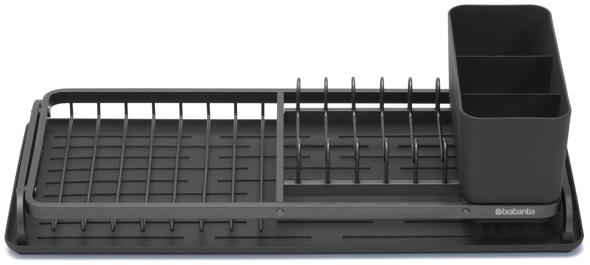 Kisebb konyháról van szó? Ne pazarolja a pulton a helyet az edények szárítására, használja ezt a Brabantia SinkSide kompakt edényszárító állványt. Úgy tervezték, hogy a kisebb munkalapokon kevés helyet foglaljon. Az állványon öt tányér helyezhető el, emellett van egy kivehető evőeszközkosár és egy sík felület poharak számára. Karc- és csúszásmentes – az állvány szilikon talpakkal rendelkezik. Mindezek mellett időt álló, ugyanis korrózióálló anyagokból készült.